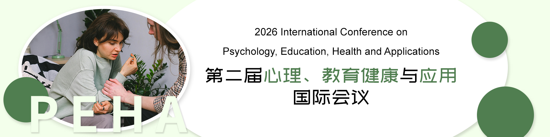 Dear guests, scholars, and industry experts, the 2nd International Conference on Psychology, Education, Health, and Applications (PEHA 2026) will grandly open in Chongqing, China in the near future. As an important academic exchange platform in the fields of global mental health, humanistic development, and education, this conference will focus on cutting-edge practices in mental health, educational innovation, and diverse paths for humanistic development. We sincerely invite colleagues from all over the world to gather together and explore how to promote the mental health and comprehensive development of individuals and society in the context of globalization. Meeting objectives: Exploring the Practice and Challenges of Mental Health in Different Cultural Contexts Share the latest research achievements and technological innovations in the field of education Strengthening interdisciplinary cooperation to promote the comprehensive development of mental health and education Enhance public awareness and support for the importance of mental health The topics for submission include but are not limited to: -Psychological Health Intervention Strategies and Practices -Educational Technology and Psychological Health Promotion -Curriculum Design and Evaluation of School Mental Health Education -Construction of Social Psychological Service System -New progress in psychological counseling and treatment -The Influence of Mental Health and Social Media -Teacher Mental Health and Stress Management -Psychological health support system for special populations -Research and Comparison of Cross Cultural Mental Health -Psychological Health from the Perspective of Humanities and Social Sciences Conference features: -Attendees will have the opportunity to listen to keynote speeches by internationally renowned experts -Participate in interactive seminars and workshops -Showcasing the latest research findings and best practice cases -Meet peers and expand professional networks We look forward to your arrival, witnessing and participating in this academic feast together, and working together to promote progress and development in the fields of mental health and education. Please follow our official website for more conference details and submit your paper abstract or full text for peer review.